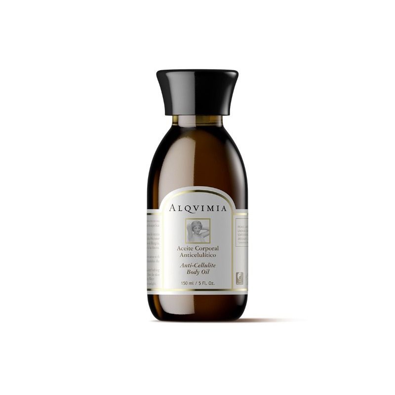Aceite Corporal Anticelulítico Alqvimia, 150 ml. Elaborado a partir de las más puras materias primas de origen natural. Su función es prevenir y reducir el aspecto de piel de naranja en las zonas con exceso de adiposidad localizada. Es ideal para muslos, caderas y glúteos.