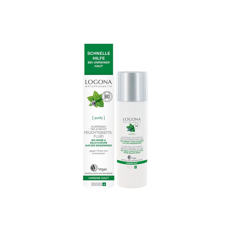 Fluido hidratante dia y noche menta Bio Logona. Proporciona hidratación y equilibra la piel con impurezas, elimina las bacterias causantes de la formación de poros, atenúa los brillos de la piel grasa.