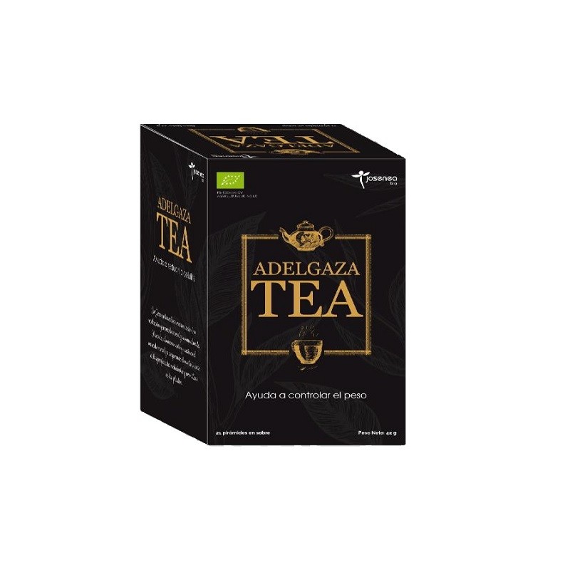 Josenea Adelgaza Tea. Compuesta por vid roja, té pu erh, té verde, menta piperita, rooibos, vara de oro y romero. Provenientes de la agricultura ecológica.