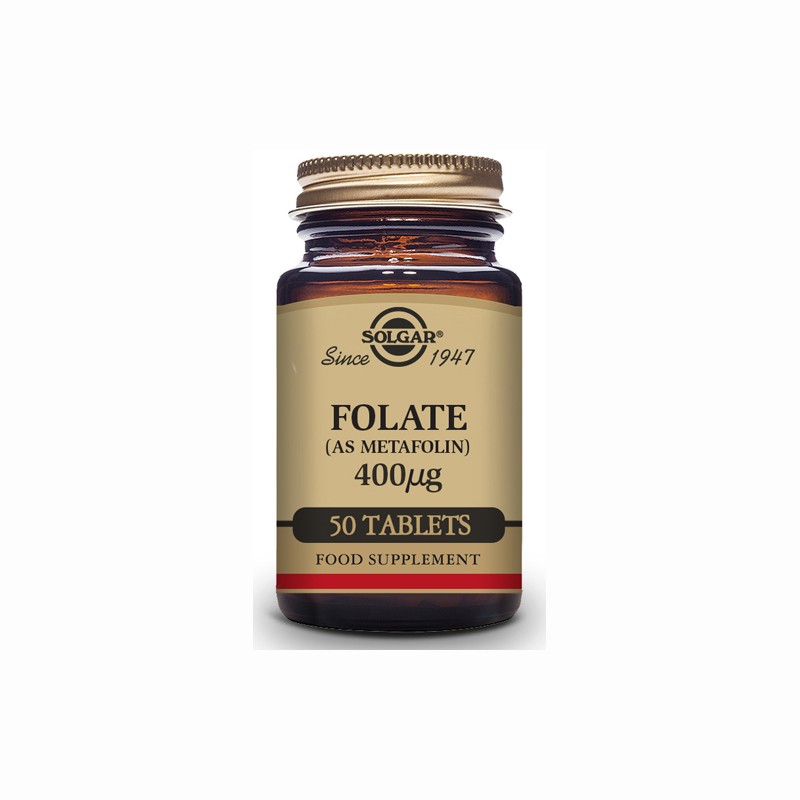 Folato (como metalofin) 400 mcg Solgar, 50 comp. Forma cristalina estable y pura de la forma predominante en el organismo de folato, capaz de atravesar la barrera hematoencefálica. Aporta nutrientes imprescindibles sobre todo para la mujer y el feto durante el embarazo.