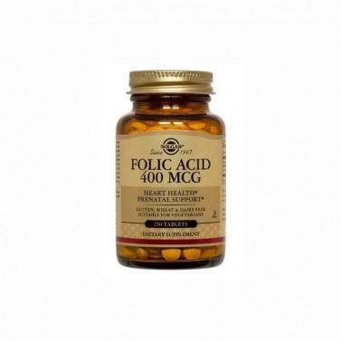 Acido Fólico Folacin 400mcg. Solgar 250 comp. Ayuda a proteger tanto a las mujeres como a los bebés en época gestacional, así como a personas que necesitan un aporte extra de este ácido.
