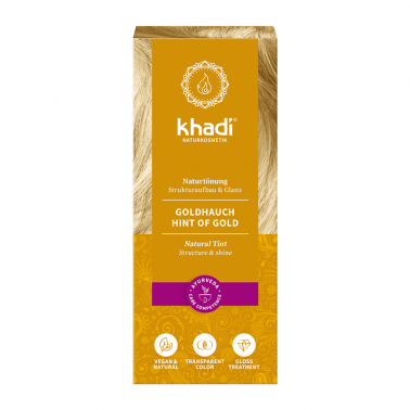 Tinte herbal color rubio toque dorado Khadí. Tinte ecológico con plantas que proporcionan un tono rubio toque dorado. Formulación ayurveda de larga permanencia para un pelo con brillo, volumen y suavidad.