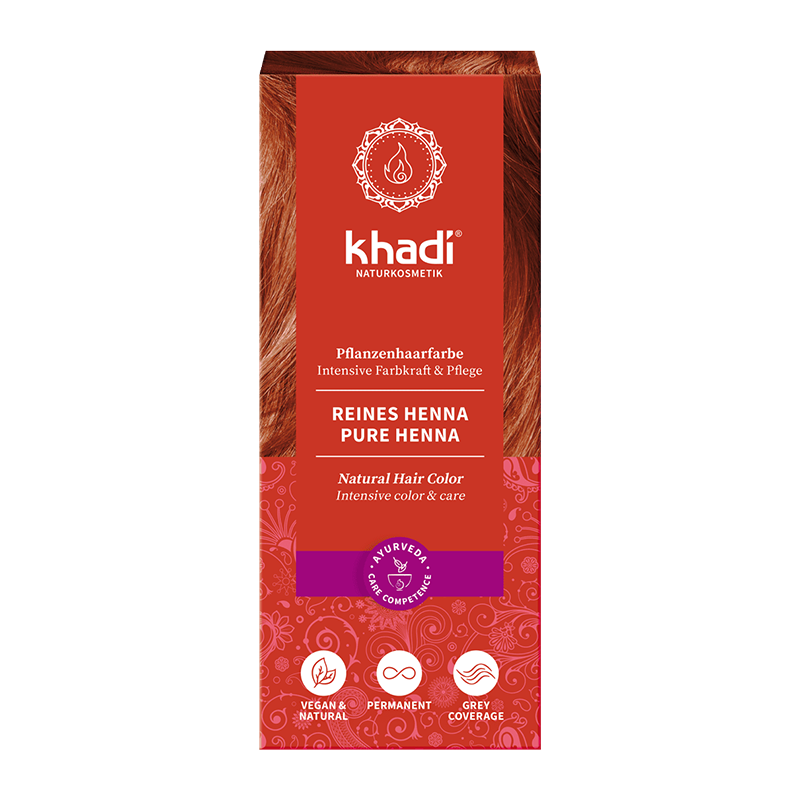 Henna natural pura Khadí  polvo puro de Lawsonia inermis, que proporciona un color rojizo al cabello.