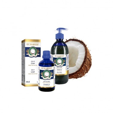 Aceite de Coco Marnys, 100 ml.  El Aceite vegetal 100% de coco MARNYS® es obtenido de la molturación de la copra (pulpa de coco) de Cocos nucifera y posterior desodorización suave.