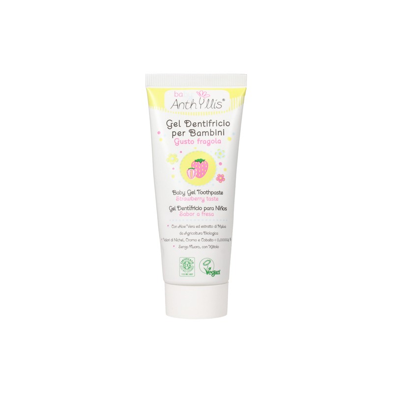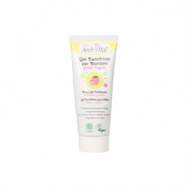 Dentífrico para niños Aloe Vera y Malva ECO Anthyllis. Gel dentífrico para niños, apto a partir de los primeros dientes, con delicado sabor de fresa. Su bajo nivel de abrasión garantiza su seguridad para la limpieza de los dientes de leche.