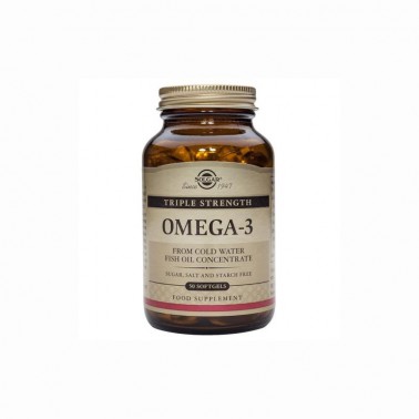 Omega 3 Triple concentración Solgar, 50 cap. Aceite concentrado de pescado de aguas frías. Favorece el sistema cardiovascular, así como el desarrollo cerebral y ayuda a mantener la piel en buen estado.