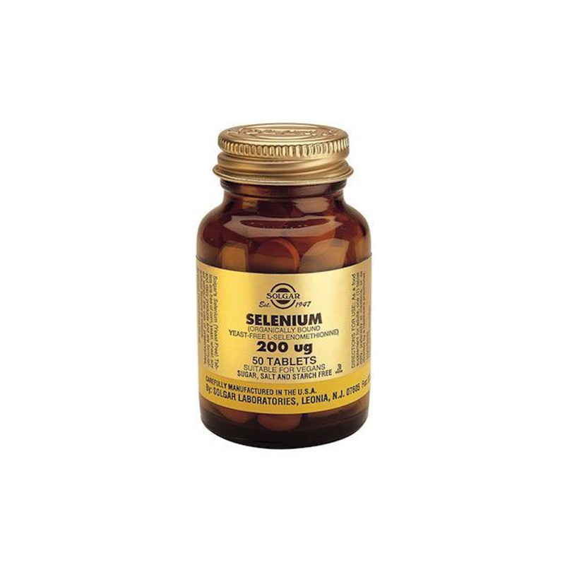 Selenio 200 mcg (sin levadura) Solgar, 50 comp. L-selenometionina sin levadura, ligada orgánicamente. Tiene acción antioxidante y refuerza la respuesta del sistema inmunológico.