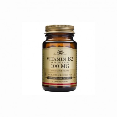 Vitamina B2 100 mg. (riboflavina) Solgar. La riboflavina es protagonista de importantes procesos enzimáticos íntimamente relacionados con la respiración celular, y también participa en la síntesis de los ácidos grasos.