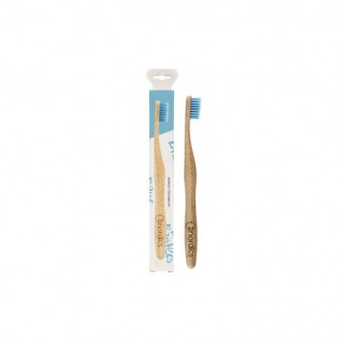 Cepillo dental Bambú Azul Nordics. Cepillo dental con mango 100% de bambú moso, biodegradable. Con cerdas de nylon reciclado que limpian delicadamente los espacios interdentales sin dañar el esmalte. Presentado en un estuche de papel reciclado.