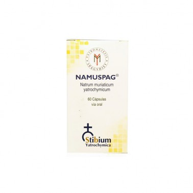 Namuspag Natrum Muriaticum Heliosar. Complemento alimenticio que por su composición presenta biotropismo por el tejido sanguíneo y los líquidos orgánicos en general.