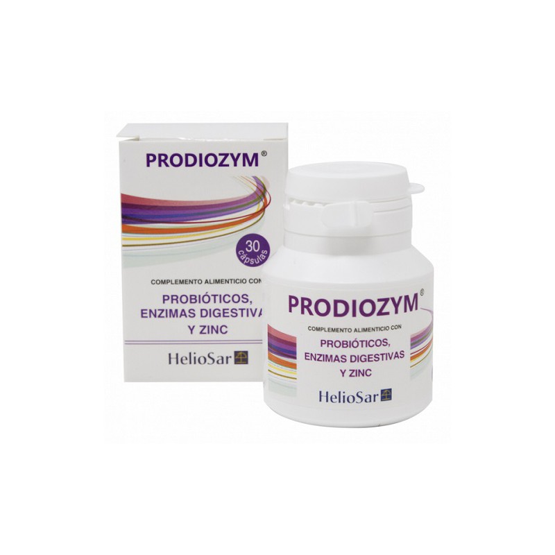 Prodiozym Heliosar. Previene los desequilibrios de la flora intestinal, reduce la diarrea asociada a los antibióticos, disminuye los síntomas del intestino permeable, ayuda a digerir la lactosa, disminuye los síntomas del intestino irritable, mejora la digestión, ayuda al funcionamiento normal del sistema inmunitario, ayuda al equilibrio ácido-base normal y contribuye al metabolismo normal de hidratos de carbono, macronutrientes, ácidos grasos.