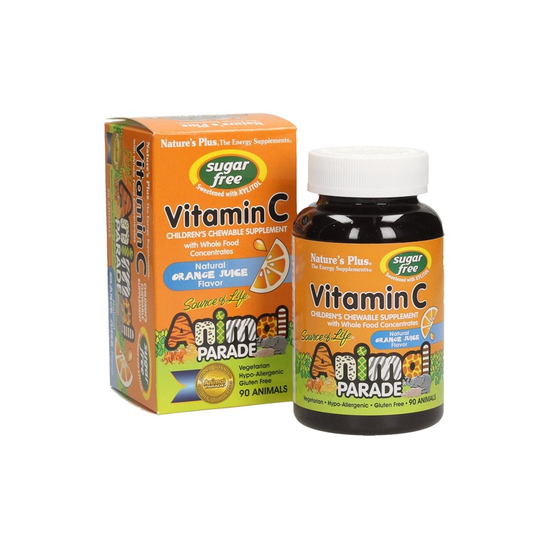 Animal Parade Vitamina C Natures Plus. La vitamina C contribuye al funcionamiento normal del sistema inmunitario durante el ejercicio físico intenso y a la formación normal del colágeno para el funcionamiento de los huesos, cartílagos, encías y dientes. Comprimidos tipo caramelo duro para niños, de agradable aroma y sabor a naranja