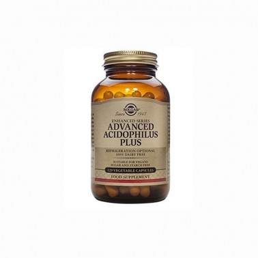 Acidophilus Plus Avanzado Solgar, 120 vegicaps. Complemento nutricional compuesto por enzimas y cepas activas para proteger especialmente el sistema digestivo y la funcionalidad de los intestinos.