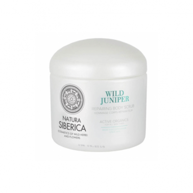 Exfoliante Corporal Reparador Enebro Silvestre Natura Siberica. Limpia la piel de manera estupenda, activando su metabolismo, alisándola y regalándole una sensación de limpieza y frescor. El enebro contiene una concentración de fitoncidas y taninos 6 veces mayor que otras especies coníferas, con lo que obtiene un efecto curativo y reparador y nutre e hidrata la piel, aportándole salud y belleza.