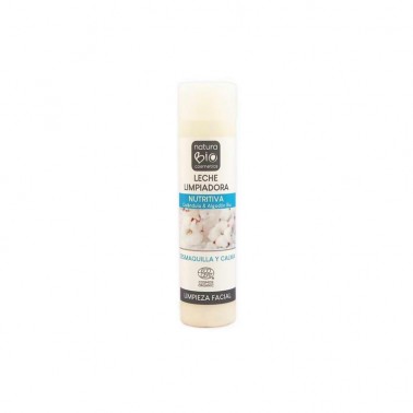 Leche Limpiadora NaturaBio Cosmetics. Fórmula cremosa y suave 2 en 1 que limpia y desmaquilla la piel de la cara y contorno de los ojos. Nutre, desmaquilla y calma la piel.