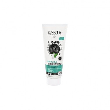 Dentífrico Menta Sin Fluor Sante. Limpia y protege los dientes y encías. Fórmula clínicamente comprobada con xilitol, té verde Bio y salvia Bio. Asegura una limpieza suave de los dientes y los intersticios. Sabor agradable y aliento fresco gracias al aceite esencial de menta.