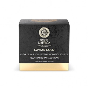Caviar Gold Crema de Día Rejuvenecedora Natura Siberica. Formulada para resaltar y preservar la belleza natural de la piel. Proporciona un efecto rejuvenecedor inmediato: estimula la regeneración de la piel, aumenta la producción de colágeno y previene la formación de las arrugas profundas de la piel y las líneas de expresión.