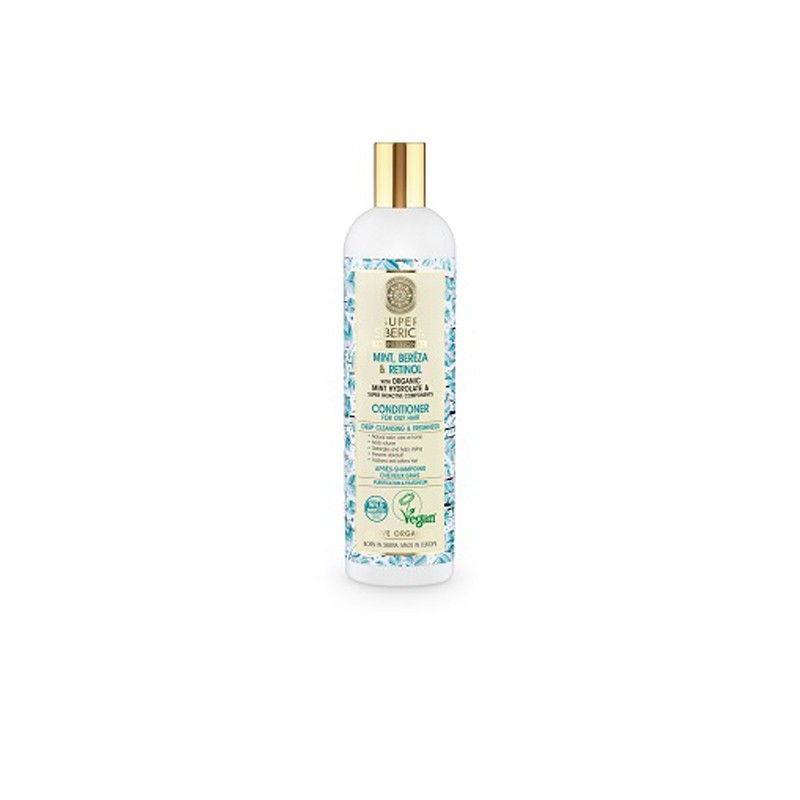 Super Siberica Acondicionador Cabello Graso Natura Siberica. Basado en hidrolato de menta siberiana orgánico, otorga volumen, lucha contra la caspa, regala al cabello una sensación de frescor y suavidad duradera y facilita el peinado.