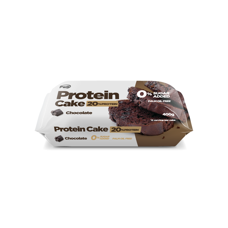 Protein Cake Chocolate PWD Nutrition. Tradicional plum cake de chocolate con un 20% de proteína obtenida de forma natural principalmente de sus harinas. Por su composición es perfecto en dietas de control de peso porque aparte es una fuente de fibra.