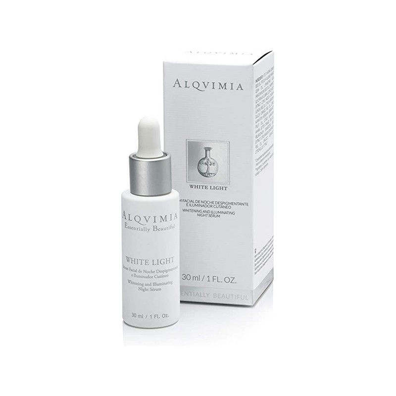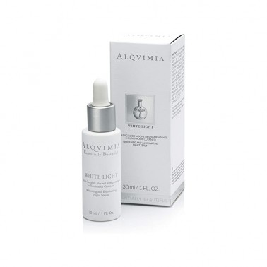 Sérum White Light Despigmentante Alqvimia, 30 ml. Sérum con efecto nutritivo e hidratante que suaviza la piel devolviéndole su luminosidad natural. Ideal para uniformizar el tono facial en pieles que han visto alteradas su pigmentación. La elevada presencia de antioxidantes naturales en la fórmula también contribuye a la prevención del envejecimiento prematuro.