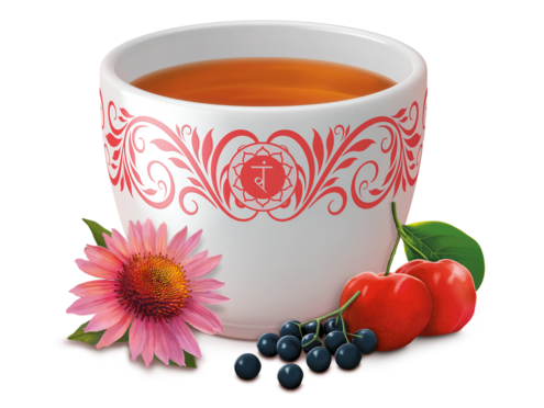 Equinácea*, rosa canina*, zumo de acerola deshidratado*, albahaca*, canela*, jengibre*, cardamomo*, bayas de saúco*, pimienta negra*, moringa*, hibisco*, cáscara de cacao*, regaliz*, hinojo*