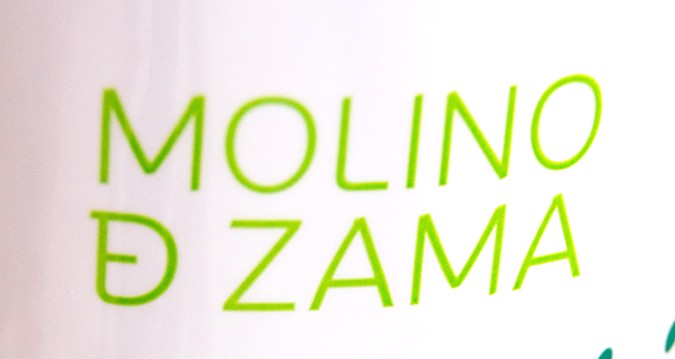 Aceite de Oliva Arbequina Molino de Zama, 500 ml. Aceite de oliva virgen extra arbequina, obtenido con aceitunas en producción integrada (la aceituna arbequina es más pequeña que la sevillana pero produce un aceite de excepcional calidad, posiblemente de los mejores aceites de oliva del mundo).
