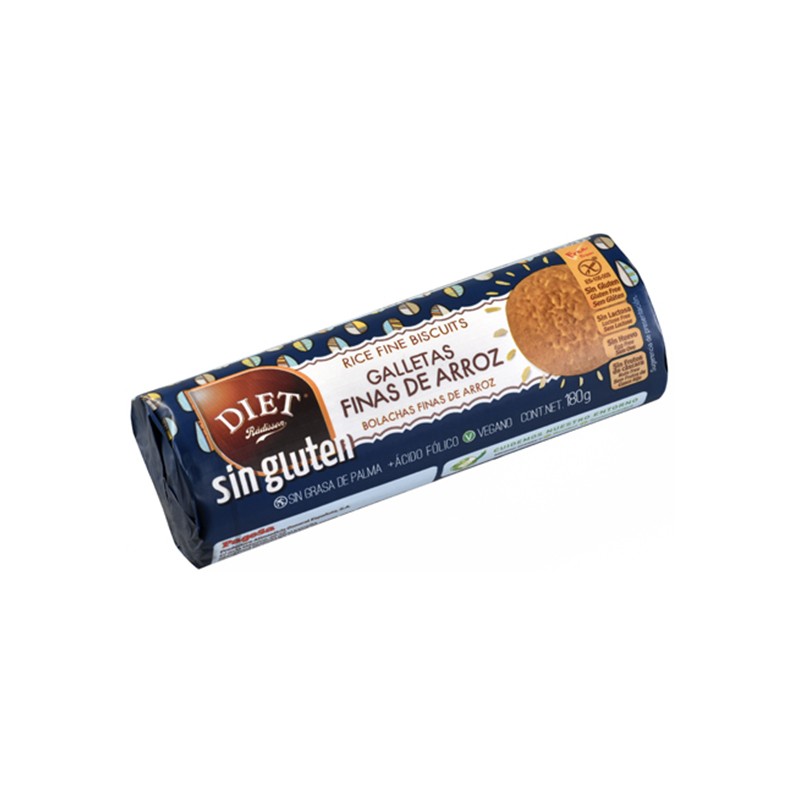 Galletas Finas de Arroz Sin Gluten Diet Radisson, 185 gr. Son sabrosas y de textura hojaldrada que las hace apetecibles en cualquier momento.