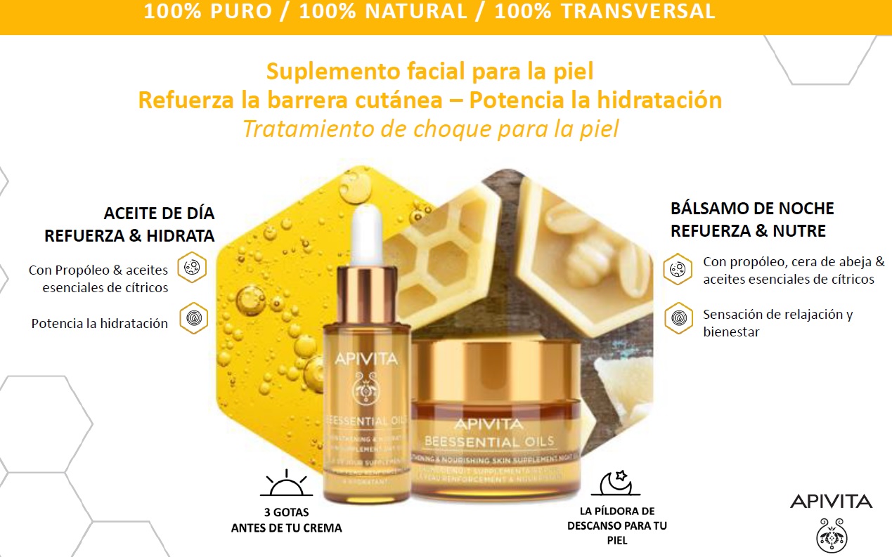 - Un estimulante suplemento de energía que realza la belleza de la piel mientras la prepara perfectamente para el cuidado posterior. Este ligero elixir facial con propóleo y aceites esenciales de cítricos, proporciona una mayor hidratación al mismo tiempo que acelera el dinamismo de la piel.