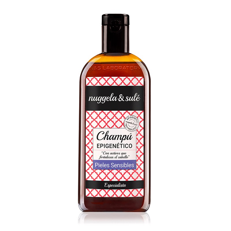 Champú Epigenético Pieles Sensibles Nuggela & Sulé, 250 ml. Ayuda a calmar, mejorar e hidratar el cuero cabelludo a la vez que por su acción epigenética, estimular el crecimiento del cabello y mejorar su calidad. Indicado para pieles sensibles, atópicas o con dermatitis.