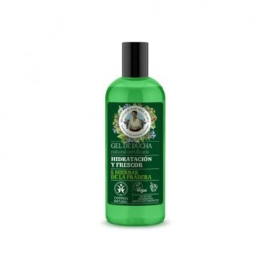 Gel de Ducha Hidratante y Refrescante Vegan Green Agafia, 260 ml. Las 5 hierbas orgánicas de la pradera (extractos de milenrama, meliloto blanco, trébol rojo, geranio y aciano) son una combinación perfecta de vitaminas y aromas naturales. Hidratan y tonifican la piel.