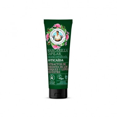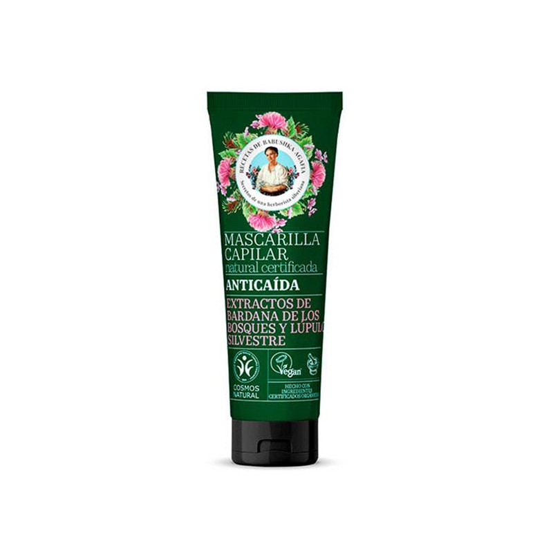 Mascarilla Capilar Anticaída Vegan Green Agafia, 200 ml. El extracto de bardana del bosque orgánico, gracias a su alto contenido de vitamina B, A, E y C y ácidos grasos, previene la caída del cabello mientras elimina la fragilidad. El extracto de lúpulo silvestre fortalece las raíces y llena el cabello de vitaminas. Sin SLS ni parabenos.