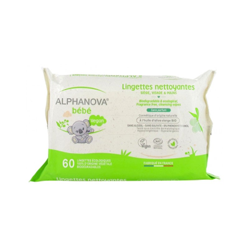 Toallitas Extra Suaves Bebe BIO Alphanova, 60 uds.