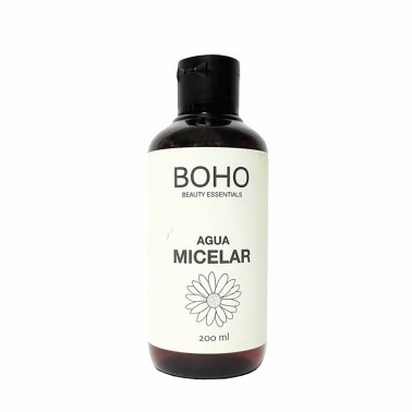 Agua Micelar Bio Boho, 200 ml. Elimina totalmente el maquillaje y restos de suciedad. Apta para todo tipo de pieles. Con ácido hialurónico, aloe vera, camomila y aciano.