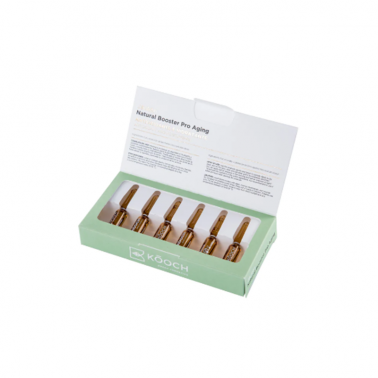 JAUKEN Natural Booster Pro Aging Kooch, 6 amp. Ampollas antiedad con fórmula natural y vegana en la que destaca un ingrediente estrella: Kalpariane™, un extracto con múltiples propiedades que proviene del alga marrón Alaria esculenta. El Kalpariane destaca por su acción antioxidante, al proteger la piel de los efectos de los radicales libres, es hidratante y refuerza la función barrera, al estimular la regeneración celular.