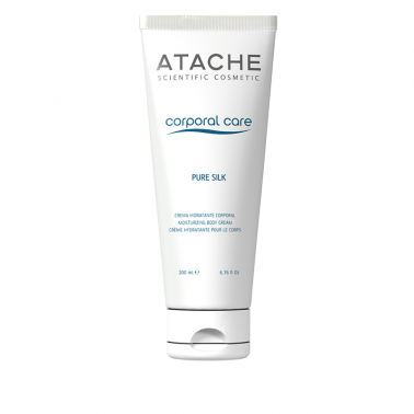 CC Corporal Care Pure Silk Crema Corporal Atache, 200 ml. Crema hidratante y reafirmante, formulada a base de escualeno, aceite de jojoba, proteínas de soja y brotes de haya, cuya combinación repara, protege y mejora la elasticidad de la piel, frenando el proceso de envejecimiento cutáneo.