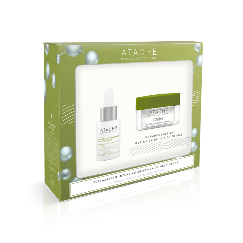 CVital Blast C Antioxidant Velvet Sérum Atache, 30 ml. La vitamina C y el ácido ferúlico, ambos en estado liposomado, garantizan un efecto glow, ya que penetran a gran profundidad. También colaboran con la síntesis de las proteínas estructurales de la piel, lo que refuerza el colchón dérmico. Además, este serum incorpora el innovador Pro Blast System, un cóctel de probióticos que potencia la capacidad de la piel para renovarse rápida y eficazmente, mejorando el proceso de regeneración natural de la piel y restableciendo el poder protector del manto ácido.