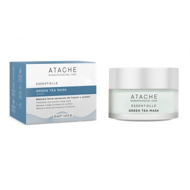 Essentielle Green Tea Mask Atache, 50 ml. Mascarilla de te verde que proporciona alivio a la piel cansada y estresada. Aporta a su vez una sensación inmediata de frescor y confort.