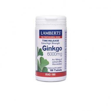 Ginkgo Biloba 6000 Alta Potencia 120 mg. Lamberts, 180 comp.
