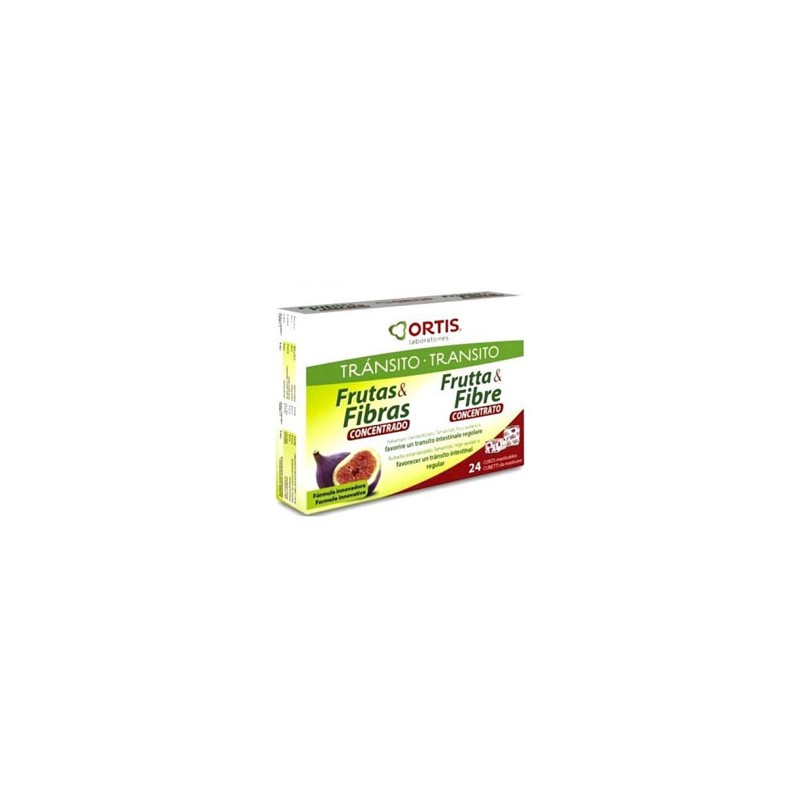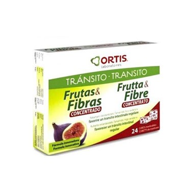 Frutas y Fibra concentrado 24 cubitos Ortis Cubos masticables destinados a la recuperación del tránsito intestinal normal.