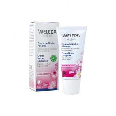 Weleda Crema de noche Facial Alisante de ROSA MOSQUETA. Crema muy nutritiva que estimula la actividad celular de la piel durante la fase nocturna. Además su fórmula combina el aceite de rosa mosqueta con aceite de oliva y de onagra. Ambos especialmente ricos en ácidos grasos esenciales. Los cuales favorecen la auto-regeneración de la piel.