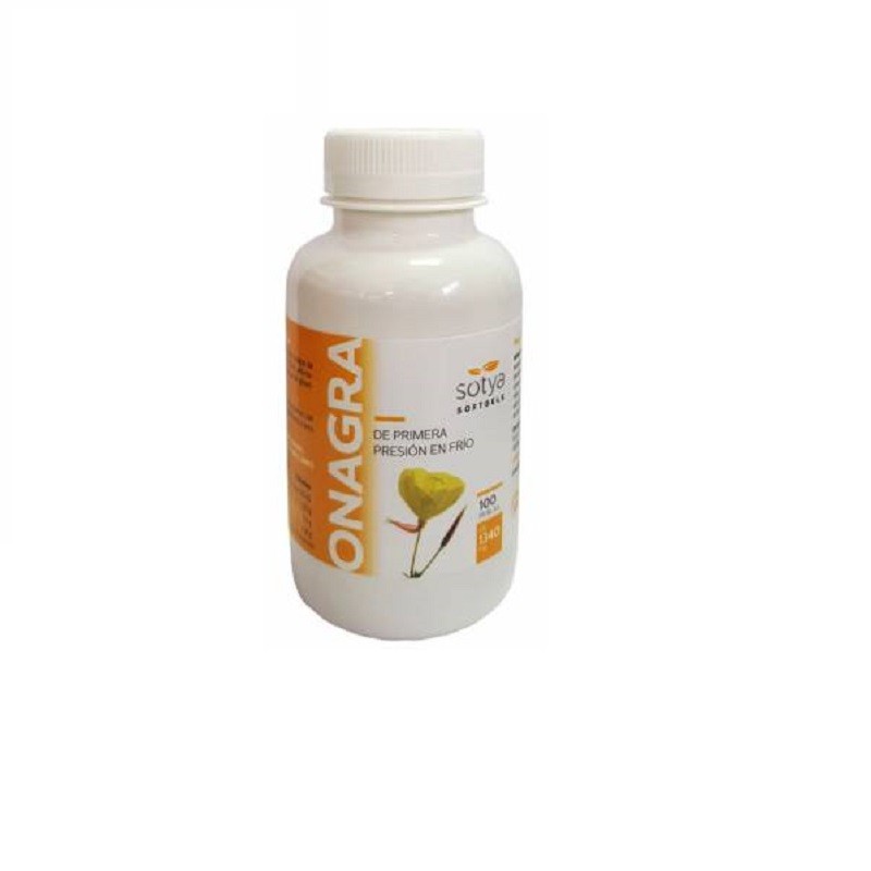 Onagra 1000 mg. Sotya 100 perlas. El aceite de onagra es un líquido translúcido de color dorado que se obtiene mediante el prensado de las semillas de la planta que le da nombre.