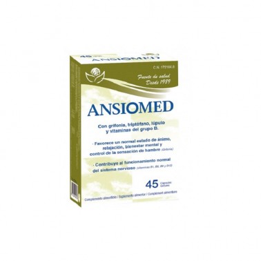 Ansiomed Bioserum. Suplemento indicado para combatir nerviosismo y ansiedad, gracias al efecto del L-Triptófano, la griffonia y el lúpulo.
