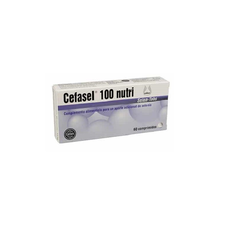 Cefasel Cefak 100 nutri. Complemento alimenticio para un aporte adicional de selenio, el cual contribuye al funcionamiento normal del sistema inmunitario, a la protección de las células frente al daño oxidativo, a la función normal del sistema inmune, a la función tiroidea normal, al mantenimiento de las uñas y del cabello en condiciones normales y a la espermatogénesis normal.