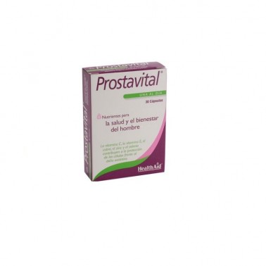 Prostavital Health Aid. Estas cápsulas están especialmente formuladas para proporcionar una combinación original de Saw Palmetto (Sabal), ortiga, Pygeum (ciruelo africano) y aceite de semillas de calabaza para el mantenimiento de una próstata sana.