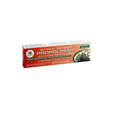 Aqua (water), Silica hydrated, Glycerin, Sorbitol, Cellulose gum, Xylitol, Propolis cera (Propolis extract), Pimpinella anisum (Anise) oil, Mentha piperita (Mint) oil, Potentilla tormentilla (Tormentil) extract, Tilia cordata (Linden) extract, Krameria triandra (Rathany) extract, Plantago lanceolata (Plantain) extract, Aloe barbadensis (Aloe vera gel), Glycyrrhiza glabra (Licorice) extract, Aesculus hippocastanum (Horsechesnut) extract), Malva silvestris (Mallow) extract, Mimosa tenuiflora (Mimosa tenuiflora) extract, Glycyrrhetinic acid, Sodium fluoride, Zinc citrate, Calcium gluconate, Sodium bicarbonate, Cocamidopropyl betaina, Parfum (Flavor), Alcohol, Propylene glycol, Sodium benzoate, Limonene, Linalool.