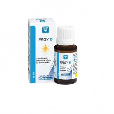 Ergy D Nutergia. Rico en vitamina D3 de origen natural que contribuye al buen funcionamiento del sistema inmunitario y al mantenimiento de los huesos así como de la función muscular. Indicado durante el periodo invernal y para niños en periodo de crecimiento