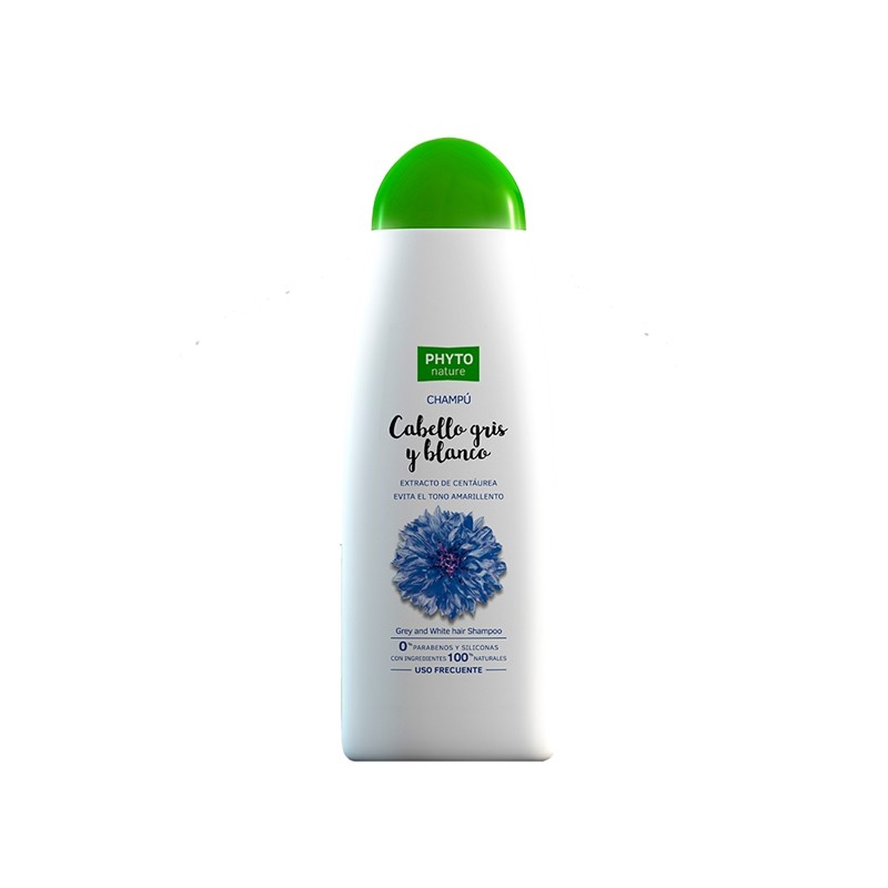 PHYTO NATURE Champu cabello gris y blanco. Champú unisex especialmente indicado para cabellos grises y blancos, así como para cabellos con mechas platino. Reduce los tonos amarillentos y reaviva el brillo natural del cabello aportándole además suavidad y elasticidad.