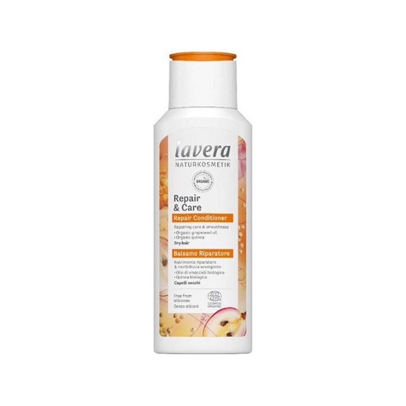 Acondicionador Reparación y cuidado BIO Lavera, 200 ml. Repara y cuida al cabello dejando un cabello suave y reparado. Para un cabello seco que lo nutre intensamente y ayuda a su reparación y a prevenir las puntas abiertas.