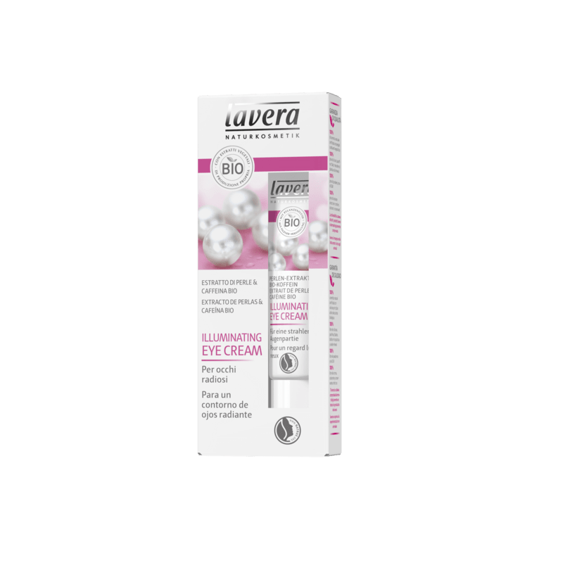 Contorno ojos iluminadora perla + cafeina BIO Lavera. Efecto instantáneo contra los signos de cansancio y ojeras.