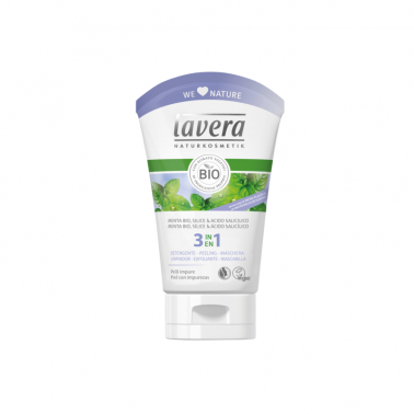 Limpiador 3 en 1 peeling + mascarilla BIO Lavera. Acción contra las impurezas de la piel con triple efecto: 3 acciones en 1 solo producto: limpiador, exfoliante y mascarilla.